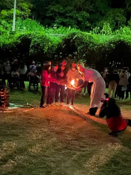 子どもたちが楽しみにしていたキャンプファイヤーの様子です!気温も思ったより暖かく、火の神も登場して、みんな大盛り上がりです!!!楽しい夜となりました(^O^)/