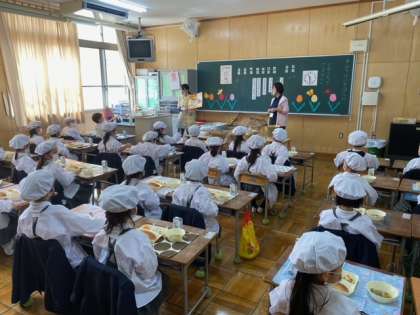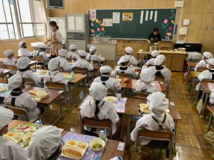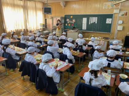 白衣の着方から片付けまで、全てが初めてですが、おいしい給食に、みんな嬉しそうでした。