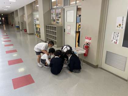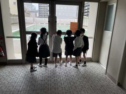 5/12、5/13の2日に分けて2年生と学校探検をしました。2年生の説明を聞きながら普段は入れない、色々な教室の中を探検することができました。6月から始まるプールも扉越しに見学することができ、「わあ!大きいな!」「楽しみ!」という声も聞こえていました。