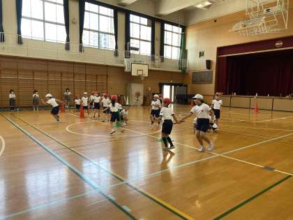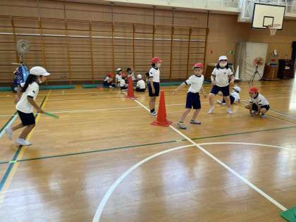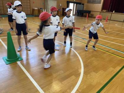 チームでタイムを測定しどのように工夫したらタイムが縮まるか話し合い活動もします。