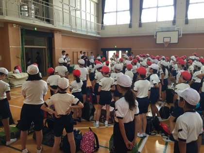 午前11時ごろ、114名全員元気に、びわ湖青少年の家に到着しました。