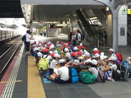 午前8時15分ごろ、扇町小学校にて出発式。その後、JR天満駅より電車に乗り、近江高島駅へ。
