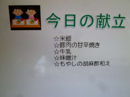 今日は、学校給食試食会があり、委員の方が献立紹介カードを作ってくださいました。