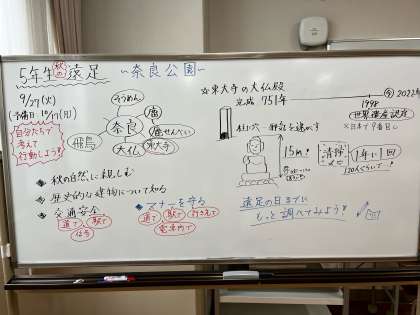 27日(火)は秋の遠足で、奈良公園へ行きます。行先や心構えについて知るために、オリエンテーションを行いました。