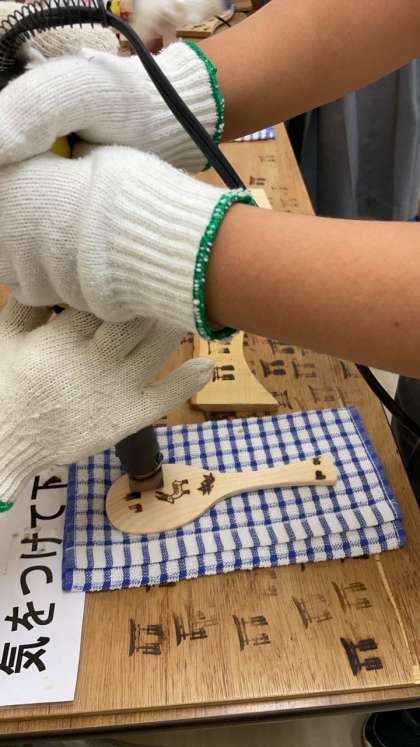 無地のしゃもじに焼き印をして模様をつけていきます。