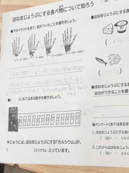 給食の栄養バランスにも目を向け、骨を丈夫にする食べ物を摂る大切さを勉強しました。