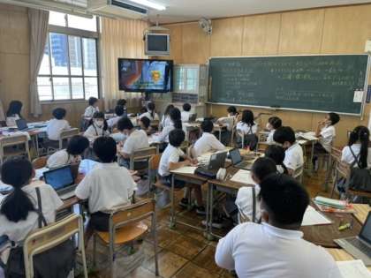 早いもので、1学期ももうすぐ折り返しの時期です。4年生は、学習に運動にとても意欲的に取り組んでいます。ICT機器を活用した社会科の学習では、パソコンや大型モニターを使うことにも慣れ、学びが深まっています。