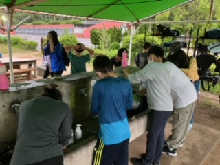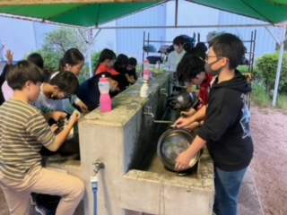 おいしいカレーを食べた後はみんなで協力して片付けました。手分けして頑張っています。