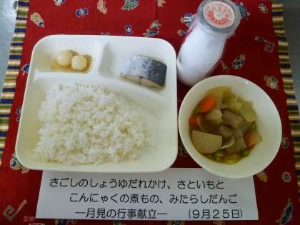あさって27日は十五夜なので、今日はお月見の行事こんだてでした。