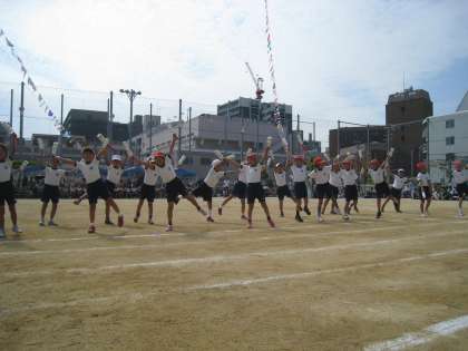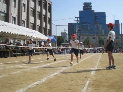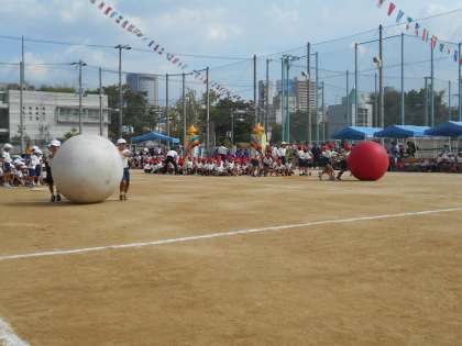 2年生の団体演技は「OLA!!」、個人競技は「ゴールをめざして!!」、団体競技は1・2年生合同の「おせおせ大玉」でした。1年生を上手くリードしながら走る姿がとてもすばらしかったです!
