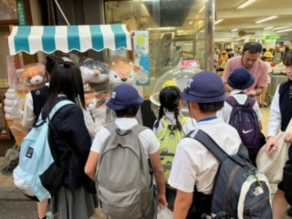 買い物は活動班、もみじ饅頭作りはクラスで活動しています。いろいろ考えながらお土産を選んだり、饅頭作りに没頭したりして楽しんでいます。