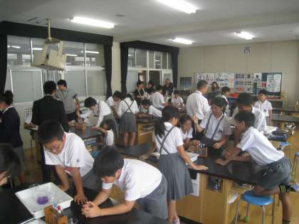 6年生は、総合的な学習の時間「ヒロシマについて調べたことを発表しよう」、理科「水溶液の仲間分け」を学習しました。紫キャベツを使った酸性・中性・アルカリ性の調べ方を学びました。
