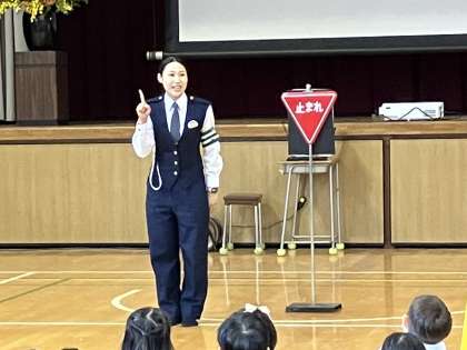 1年生は交通安全と防犯について、曽根崎警察の方々にお話をいただきました。