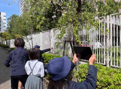 例年より、桜の開花が遅かったので、授業で観察することができました。普段ここまで詳しく見ることがないので、子ども達は夢中で観察していました。