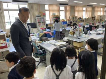 5月9日(木)10日(金)、1、2年生で『学校探検』を行いました。入学して1ヶ月が過ぎ、学校生活にも慣れてきた1年生に、2年生が学校を案内しました。ワクワク感いっぱいの1年生を、必死に案内する2年生、どちらにも学び多き時間でした。