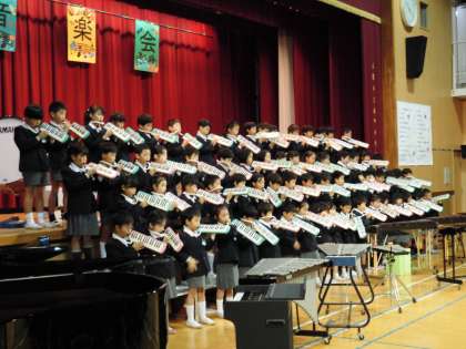 2年生は、「虫のこえ」「とんぼのめがね」「手のひらをたいように」「小ぎつね」「勇気100%」でした。2年生にとっても初めての音楽会。みんなとっても緊張していましたが、友達と歌声や音を合わせようと、一生懸命な表情で歌い、演奏する様子がすばらしかったです。歌いながらの手話もとっても上手でした!