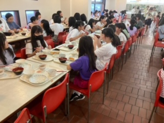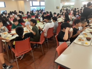 2日目海上プログラムも無事終わり、夕食を食べてます。みんなお腹が減っているようで、おかわりをたくさんしています。