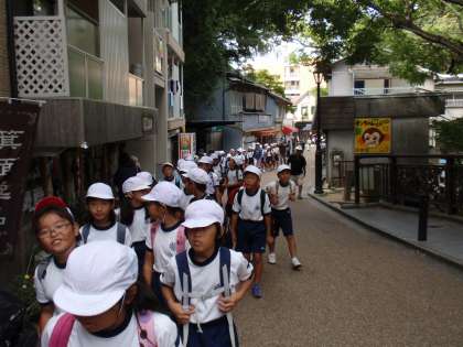 子どもたちはすれ違う人々に「こんにちは!」とさわやかにあいさつし、ほめていただきました。