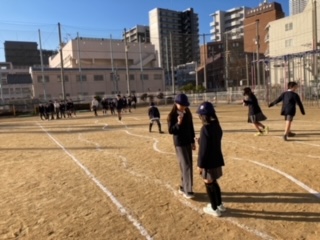 体育館で、1、3、6年生が、「もうじゅうがり」を、運動場では、2、4、5年生が「ヘビ年ヘビジャンケン」のゲームをしました。