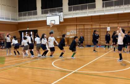 1月31日(金)は、なわとび大会でした。耐久戦(各クラス1人ずつ跳び、引っ掛かったら次の人に)は、最後まで決着が分からず、応援にも熱が入りました。司会進行も上手く進められ、観戦の態度もみんなが楽しめるように、多くの人が気をつけている様子はさすが6年生でした。