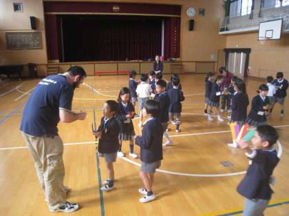 1月14日(木)、1年生が初めての外国語活動体験を行いました。ゲームや運動を取り入れながら、英語に触れる活動が中心となっています。みんな笑顔で楽しく取り組んでいました!