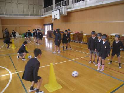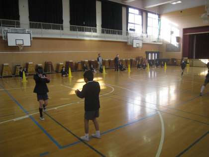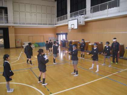 1月15日(金)、4年生が、ブラインドサッカーの選手とコーチを招いての体験授業を行いました。視覚情報が無い状態で、コーラーと呼ばれる役割の人の声だけを頼りに、目標に向かって走ったりボールを蹴ったりします。子どもたちにとって、貴重な体験の場となりました。