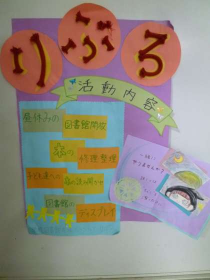 子どもたちが本に親しむ機会をもてるようにと、図書館ボランティアの「リブロ」さんが活動してくださっています。