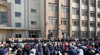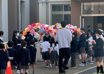 入学をお祝いして「1年生おめでとう集会」が運動場でありました。