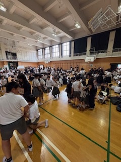 雨で延期になっていた児童集会を、お昼休みに友だちグループで行いました。