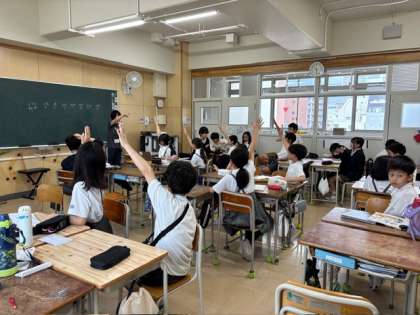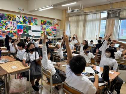 タブレットなどを活用して作成していた問題でクイズ大会を行いました。それぞれのグループで協力し、楽しみながらも真剣に取り組むことができました。