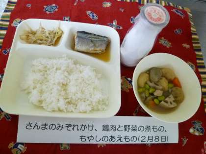 さんまの骨をとるのに苦労している児童もいましたが、上手に食べている人もありました。ほとんどの児童はがんばって残さずに食べることができました。家でも練習をしましょう。一口がんもがよく煮含められておいしい煮物も残食なしでした。
