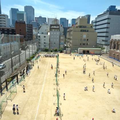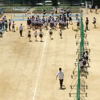 運動委員会が中心となって50mのタイムを計り、自己ベストタイムのこうしんを目指します。