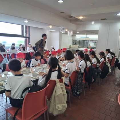 お昼は食堂で食べています。午後からの活動も元気に頑張ります。