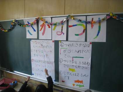 1年生は「さかなつり」です。色とりどりのお魚を、制限時間内に何匹釣れるか、みんなで大盛り上がりでした!