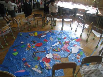 3月4日(金)たてわり班で、各学級のお店めぐりをするフリーフェスティバルが行われました。どのお店も楽しい工夫がいっぱいです!                  各学年のお店の様子をお伝えします。