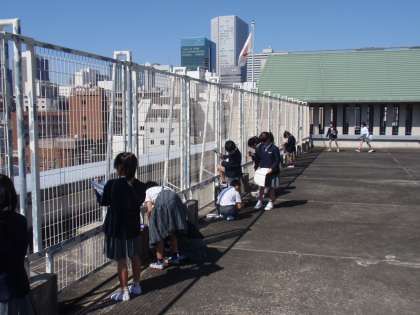 東西南北を学び、それぞれの方位の「近くに見えるもの」「遠くに見えるもの」をノートにメモしました。