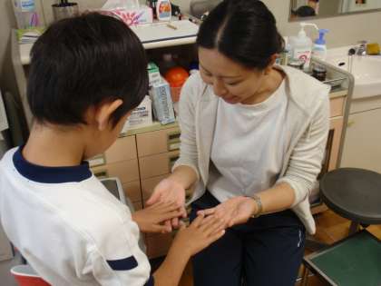 保健指導では、養護教諭より、本校の子どもたちはどんな怪我が多いのか、それぞれの怪我の時にはどんな対処をすればよいのかということについて指導がありました。