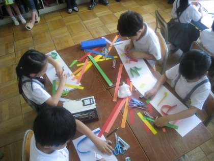 図画工作では、画用紙を使ってネームプレートを作りました。ひらがなによっては、難しい箇所もありましたが、みんな上手に工夫して完成することができました!