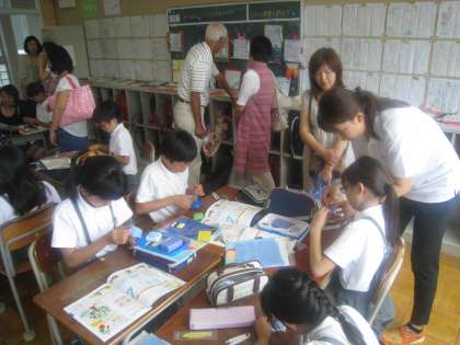 5年生は、算数の小数のわり算について、習熟度別学習で学びました。「1.2mが240円のリボンと、0.8mが240円のリボン、それぞれ1mあたりの値段は?」の問題を、3つの教室に分かれ、それぞれの児童の学び方に応じて学習を進めました。
