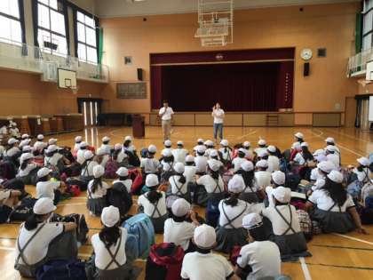 今日から3日間の予定で、5・6年生が自然体験学習に出かけます。行き先は、滋賀県高島市にある、大阪市立びわ湖青少年の家です。