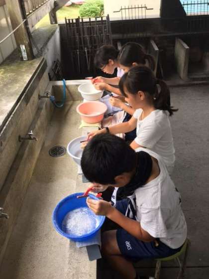 自然体験学習(2日目)〜勾玉作り(1)〜