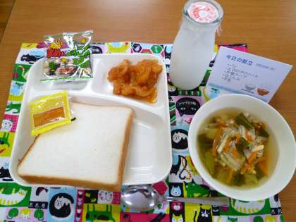 明日は、チキンカレーライス、キャベツと三度豆のサラダ、ヨーグルトです。お楽しみに!