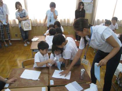 尿に見立てた水が、携帯トイレにみるみる吸収される様子に、みんな驚いていました。