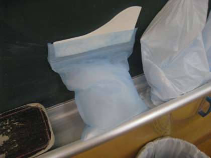 1、2年生は、防災グッズとして携帯トイレの体験を行いました。