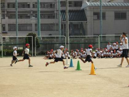 まずは、1年生。小学校初めての運動会に向けて、全力で練習中です!!