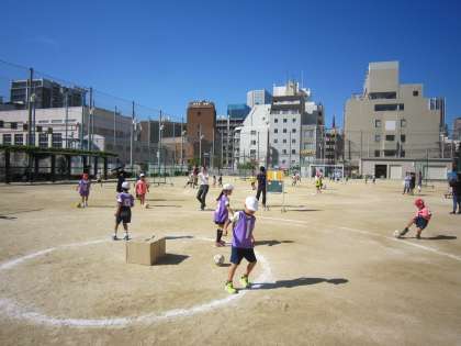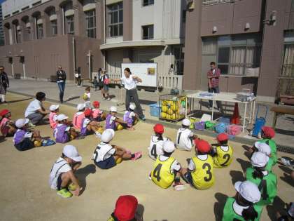 体育では「ドーナツ・キック・ターゲット」に取り組みました。力強くボールを蹴る姿がたくさん見られ、春よりもひと回り成長した様子でした!