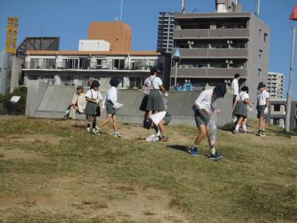 10月24日、大阪マラソンの開催に合わせて、日頃よく利用している扇町公園の清掃活動を行いました。友だちグループ(たてわり班)で、それぞれの分担場所のごみを集め、公園をきれいにしました。