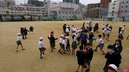 今日の2時間目と3時間目の休み時間は、その縦割り班で、1年生から6年生のみんなが一緒に遊びました。高学年の子も、低学年の子もとても楽しそうでした。