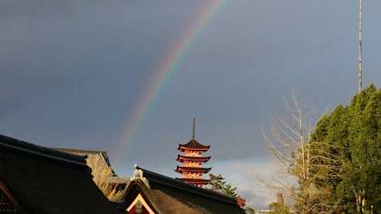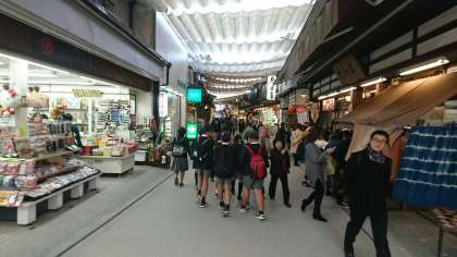 空に虹がかかる中、宮島でのお楽しみタイム、みやげ物街での自由行動です!