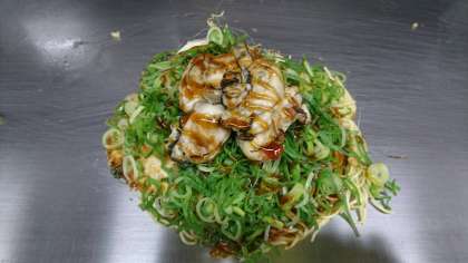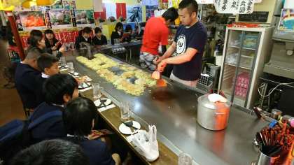 昼食は、お好み物語「駅前ひろば」で、お好み焼きを味わいました。思い出の味になったかな?